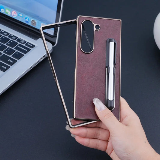 Premium Leather Shockproof Phone Case with Screen Protector & Pen Slot for Galaxy Z Fold 7