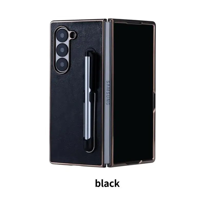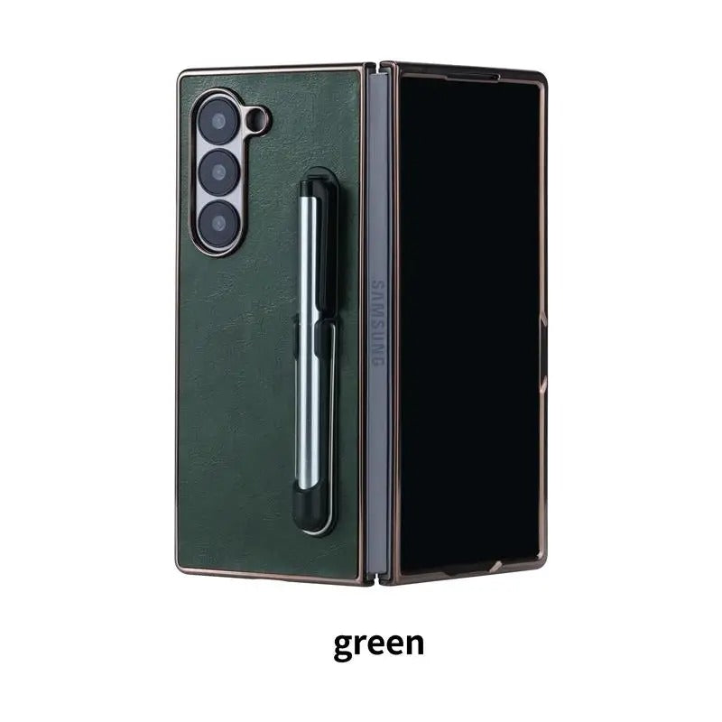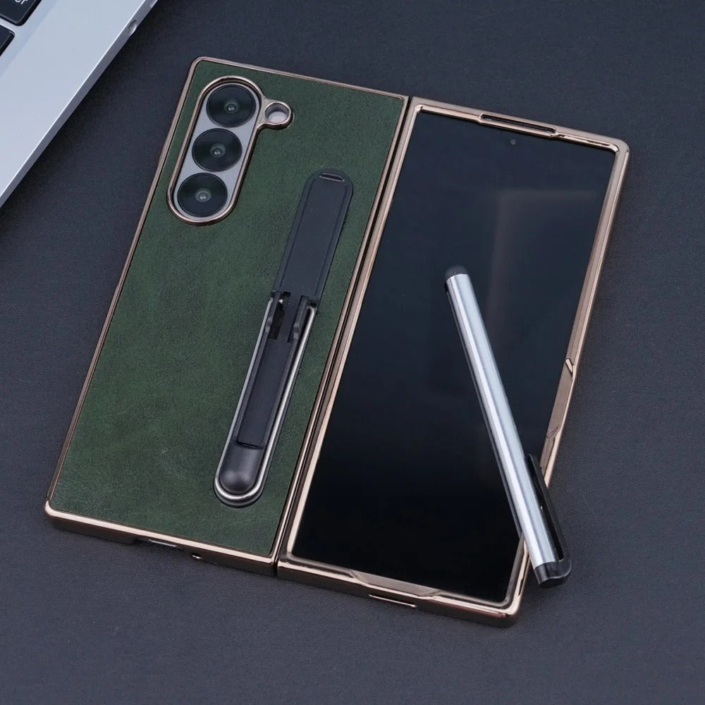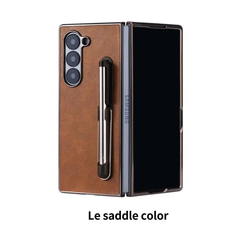 The Luxon® - Retro Leather Kickstand Case with Pen Holder elevates your Galaxy Z Fold with timeless vintage style and modern functionality. Made from premium leather, it features complete hinge protection, a built-in kickstand for hands-free use, and a convenient pen holder to keep your stylus within reach. Perfect for professionals and style enthusiasts alike.